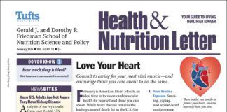 Tufts University Health & Nutrition Letter is a lifestyle guide to achieving better health. It is written with your needs in mind but is not a substitute for consulting with your physician or other health care providers. The publisher and authors are not responsible for any adverse effects or consequences resulting from the use of the suggestions, products or procedures that appear in this magazine. All matters regarding your health should be supervised by a licensed health care physician.