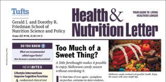 Tufts University Health & Nutrition Letter is a lifestyle guide to achieving better health. It is written with your needs in mind but is not a substitute for consulting with your physician or other health care providers. The publisher and authors are not responsible for any adverse effects or consequences resulting from the use of the suggestions, products or procedures that appear in this magazine. All matters regarding your health should be supervised by a licensed health care physician.