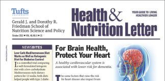 Tufts University Health & Nutrition Letter is a lifestyle guide to achieving better health. It is written with your needs in mind but is not a substitute for consulting with your physician or other health care providers. The publisher and authors are not responsible for any adverse effects or consequences resulting from the use of the suggestions, products or procedures that appear in this magazine. All matters regarding your health should be supervised by a licensed health care physician.