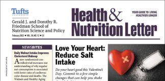 Tufts University Health & Nutrition Letter is a lifestyle guide to achieving better health. It is written with your needs in mind but is not a substitute for consulting with your physician or other health care providers. The publisher and authors are not responsible for any adverse effects or consequences resulting from the use of the suggestions, products or procedures that appear in this magazine. All matters regarding your health should be supervised by a licensed health care physician.