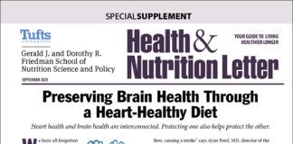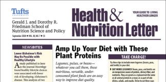 Tufts University Health & Nutrition Letter is a lifestyle guide to achieving better health. It is written with your needs in mind but is not a substitute for consulting with your physician or other health care providers. The publisher and authors are not responsible for any adverse effects or consequences resulting from the use of the suggestions, products or procedures that appear in this magazine. All matters regarding your health should be supervised by a licensed health care physician.