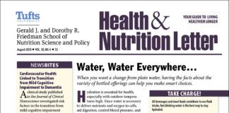 Tufts University Health & Nutrition Letter is a lifestyle guide to achieving better health. It is written with your needs in mind but is not a substitute for consulting with your physician or other health care providers. The publisher and authors are not responsible for any adverse effects or consequences resulting from the use of the suggestions, products or procedures that appear in this magazine. All matters regarding your health should be supervised by a licensed health care physician.