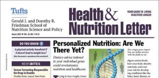 Tufts University Health & Nutrition Letter is a lifestyle guide to achieving better health. It is written with your needs in mind but is not a substitute for consulting with your physician or other health care providers. The publisher and authors are not responsible for any adverse effects or consequences resulting from the use of the suggestions, products or procedures that appear in this magazine. All matters regarding your health should be supervised by a licensed health care physician.