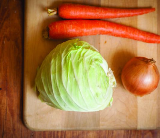 The popular Korean condiment, kimchi, is simple to make and is an excellent introduction to making your own fermented vegetables. Kimchi can be eaten on its own, or used to liven up stir-fries, scrambled eggs, tacos, and grain bowls. Before you begin preparation, make sure you have a clean 2-qt (or two 1-qt) mason jar(s) on hand. This recipe makes a fairly large batch. Cut the recipe in half, if you prefer.