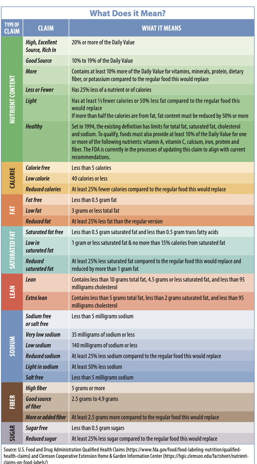 ➧ Understand Front-of-Package Claims. Words like “high,” “low,” and “reduced” are defined by law. It helps to know what they mean.
